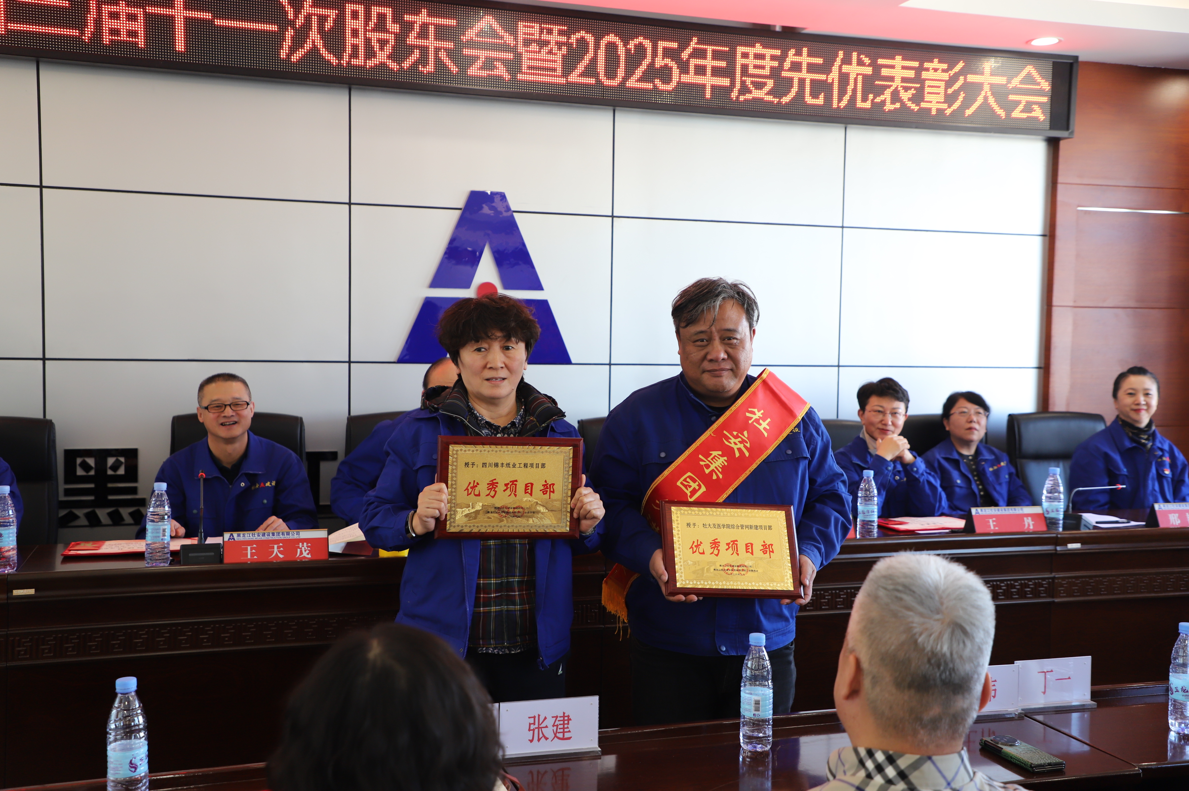 優(yōu)秀項目部獎,左起:四川錦豐紙業(yè)工程項目部、牡大及醫(yī)學院綜合管網(wǎng)新建項目部